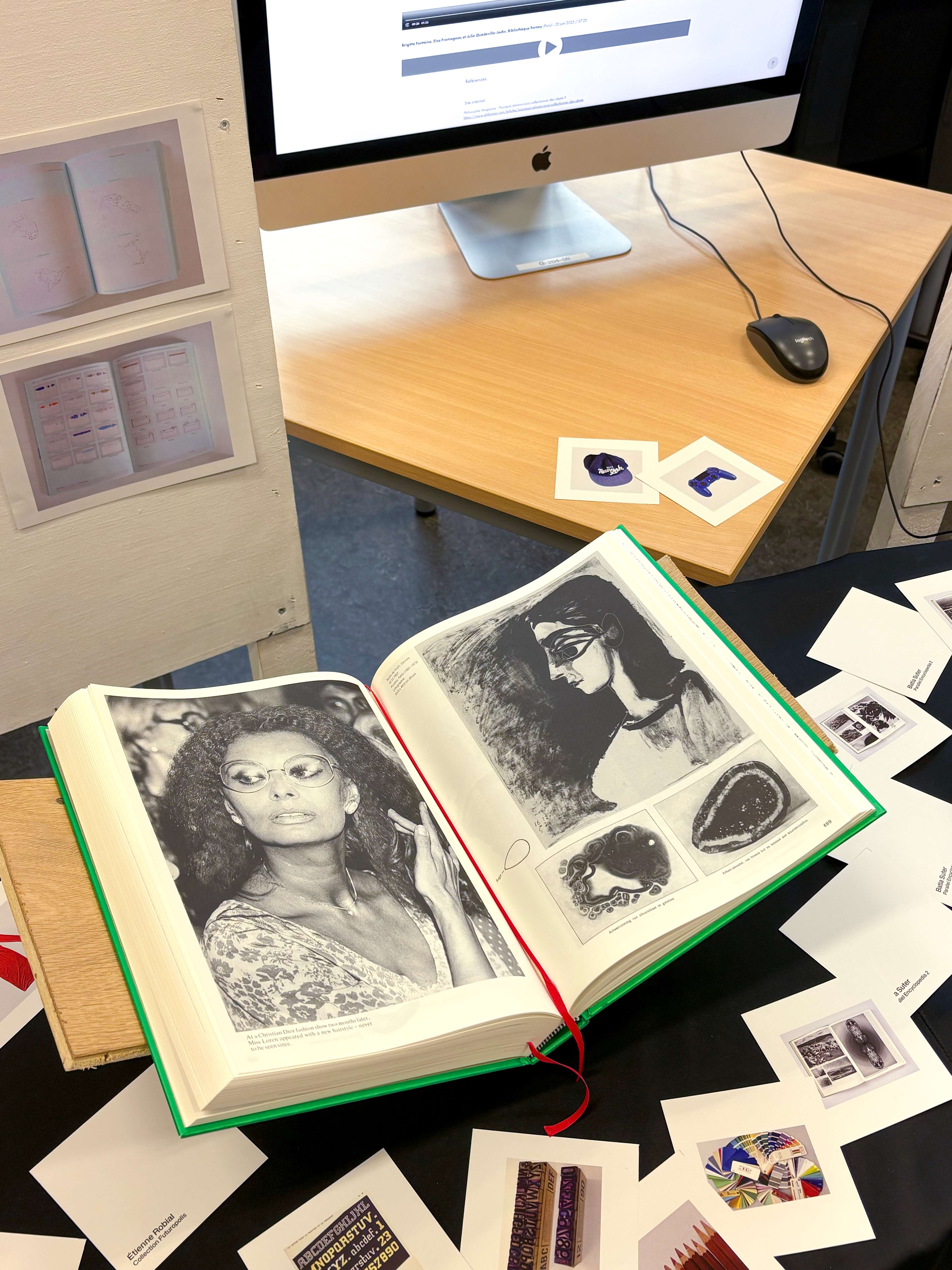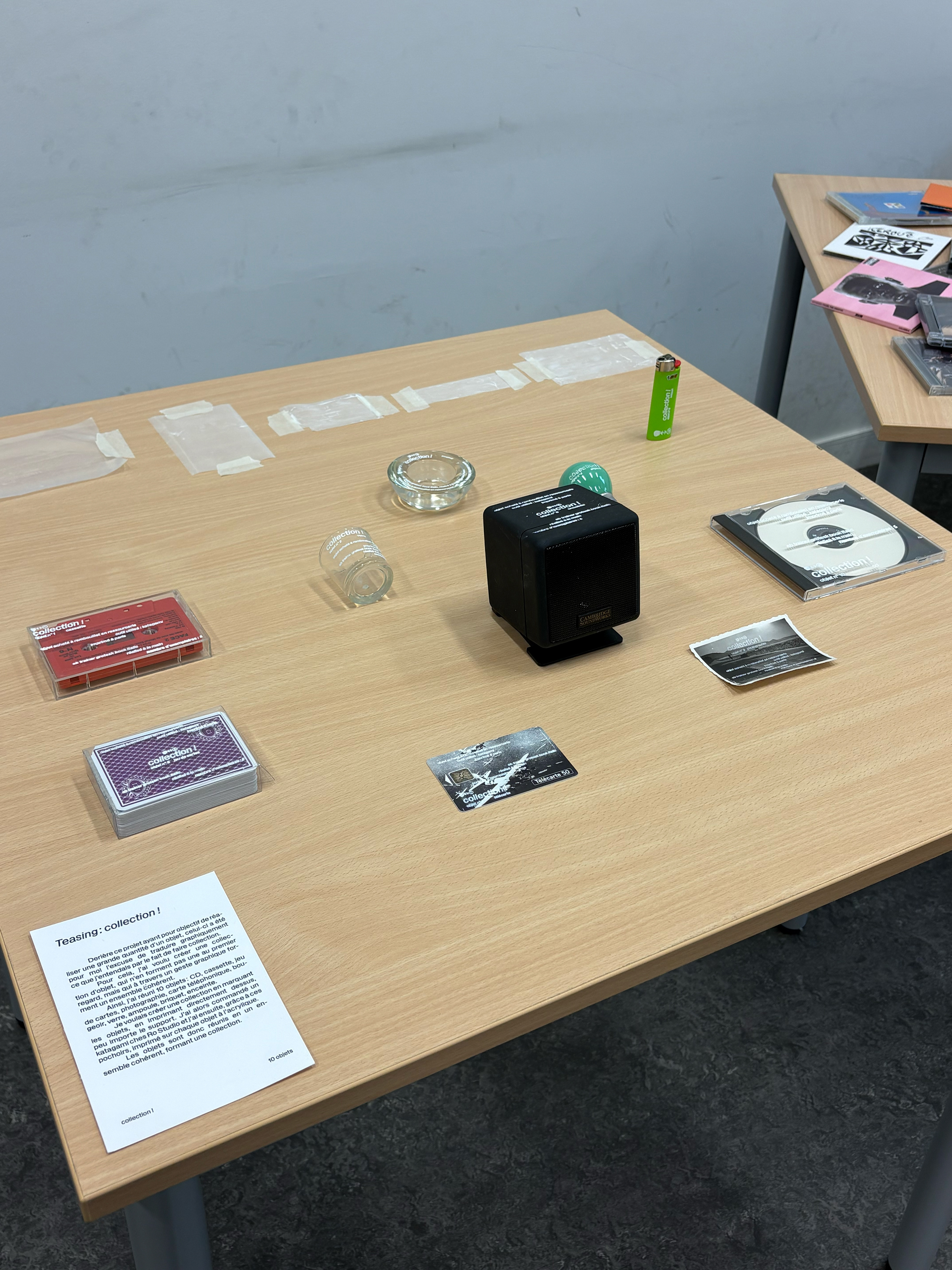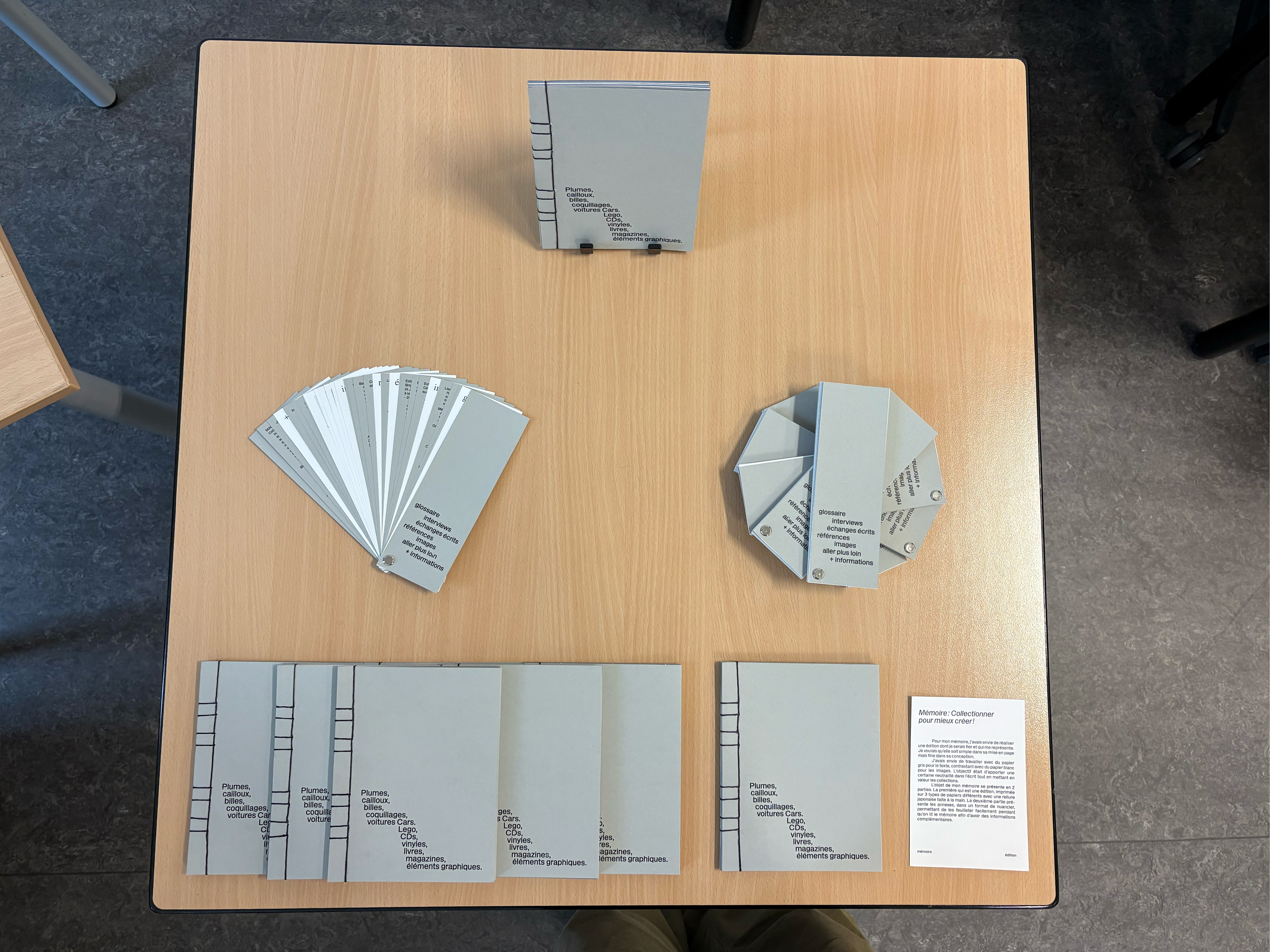 Scénographie de soutenance de mémoire présentant mes différentes recherches et références ainsi que les interviews que j'ai pu réaliser. Présentation de mon objet éditorial et du projet Teasing (voir les autres projets).