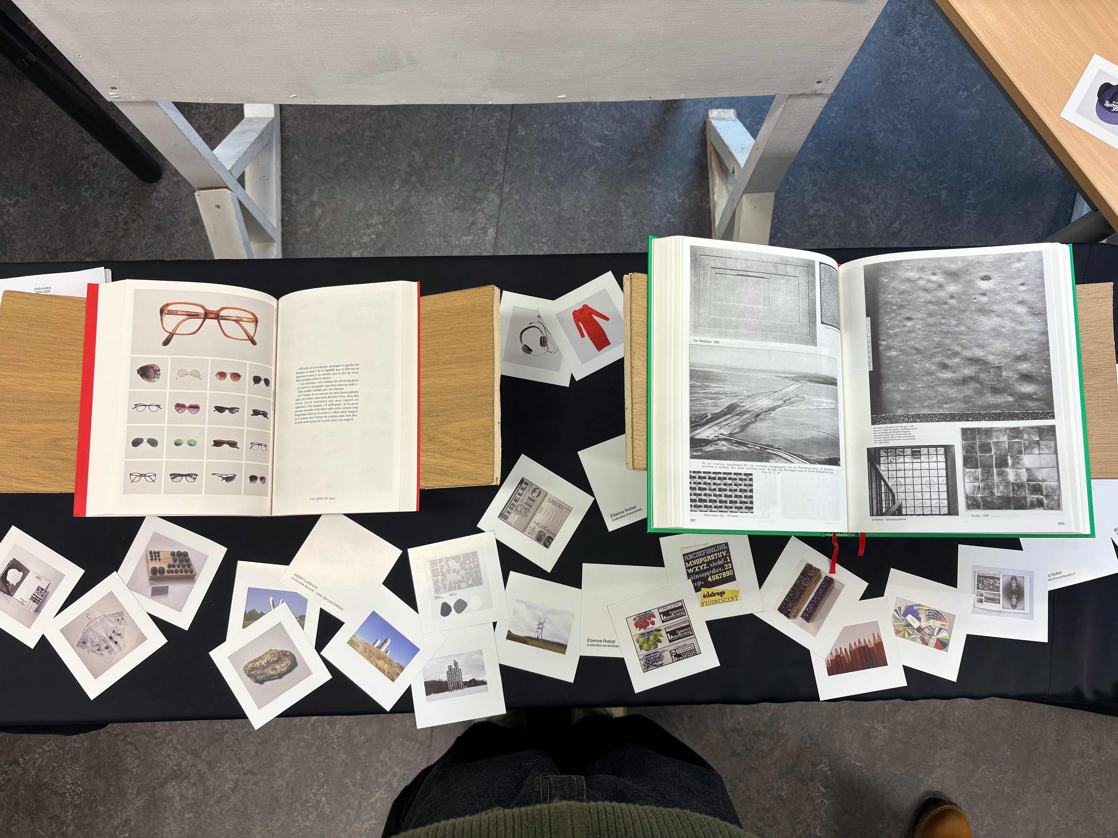 Annexe réalisée en 6 exemplaires, façonnée à la main et reliée par des vis de reliure. Imprimé sur un papier Raylu non couché gris 180gr pour le texte et un papier satiné 250gr pour les chapitres et les images.